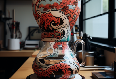 Diese gestapelte Kaffeemaschine ist mehr als nur ein Kaffeegerät – sie ist ein kunstvolles Meisterwerk, das die Zen-Ästhetik Japans mit einem Hauch von Vintage-Wellen und floraler Finesse verbindet.
